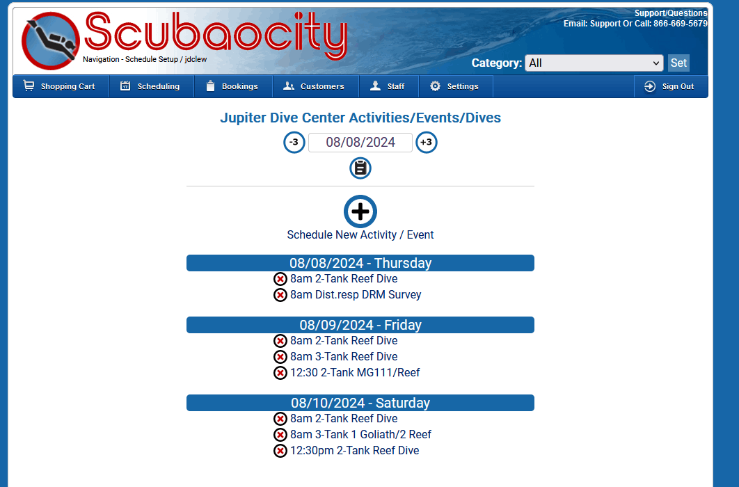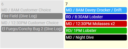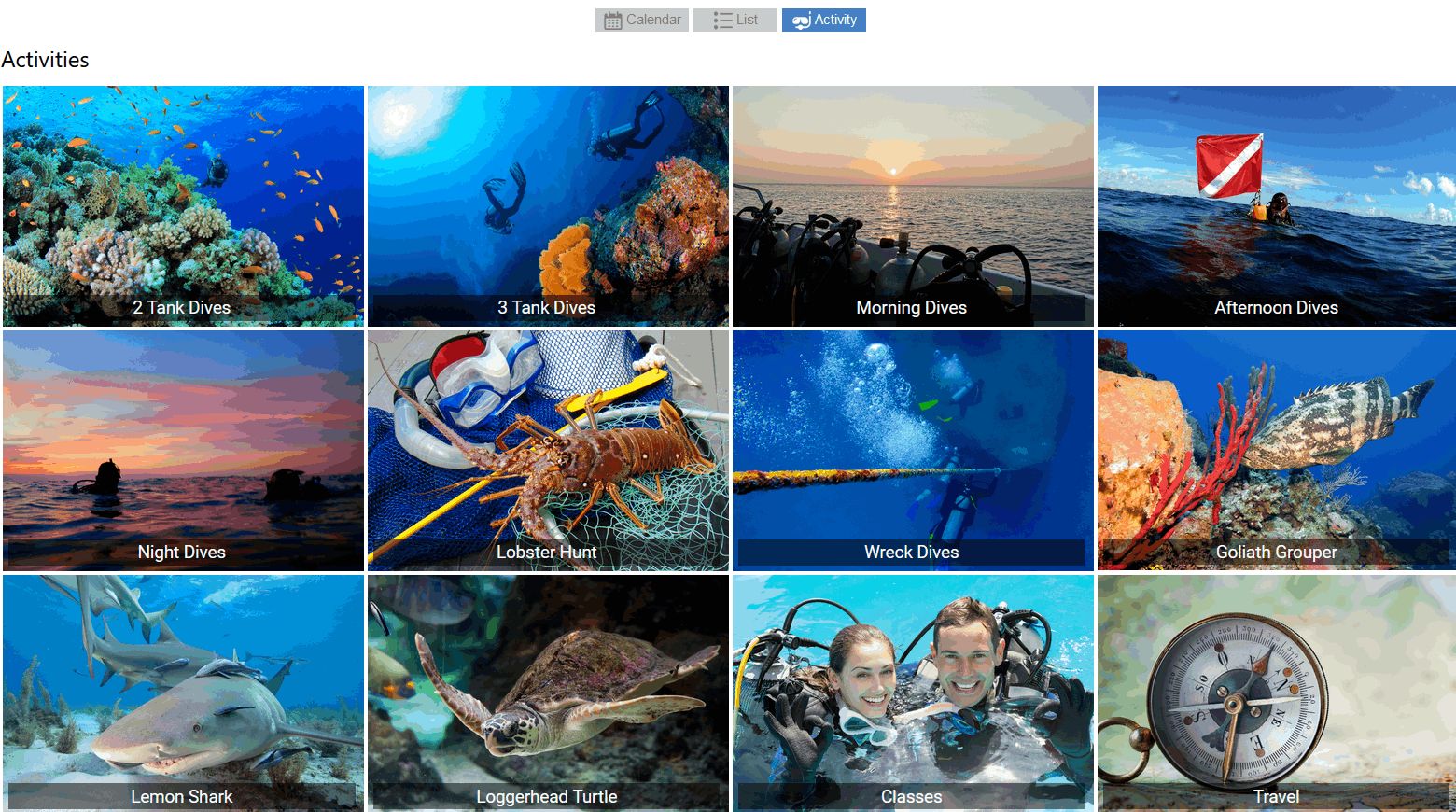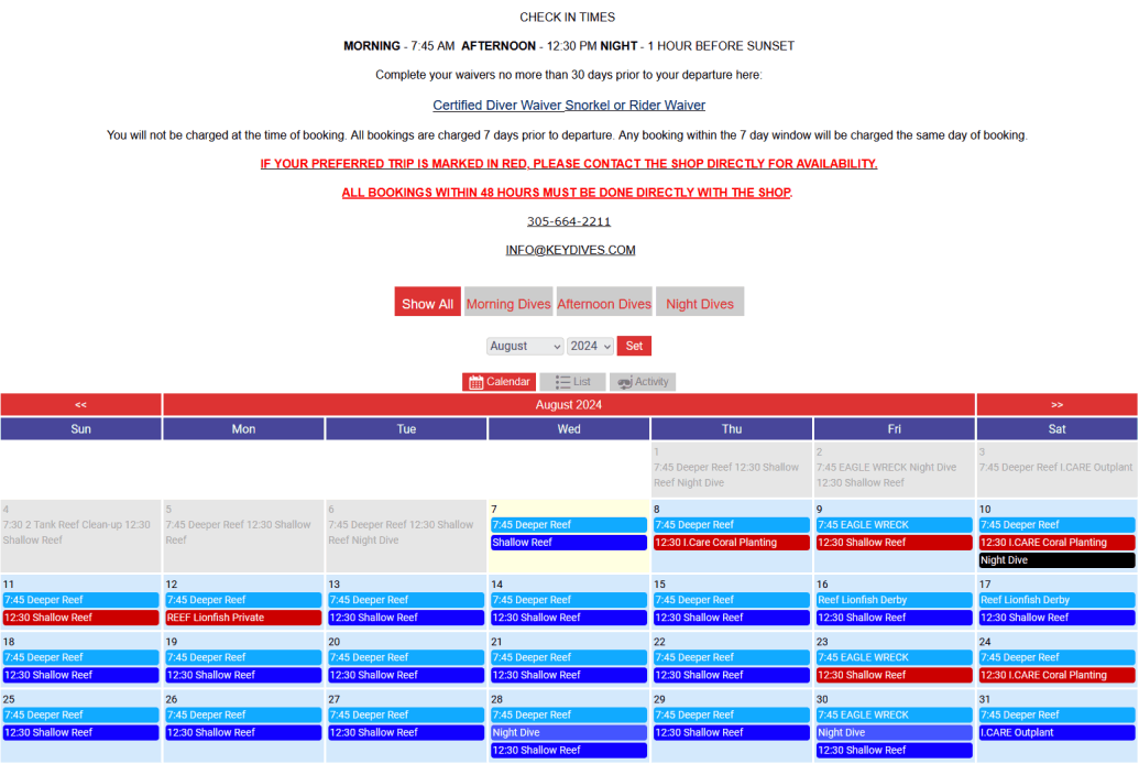 Schedule Dives, Charters, Snorkel Trips, Activities, Events, Trips, and Classes.