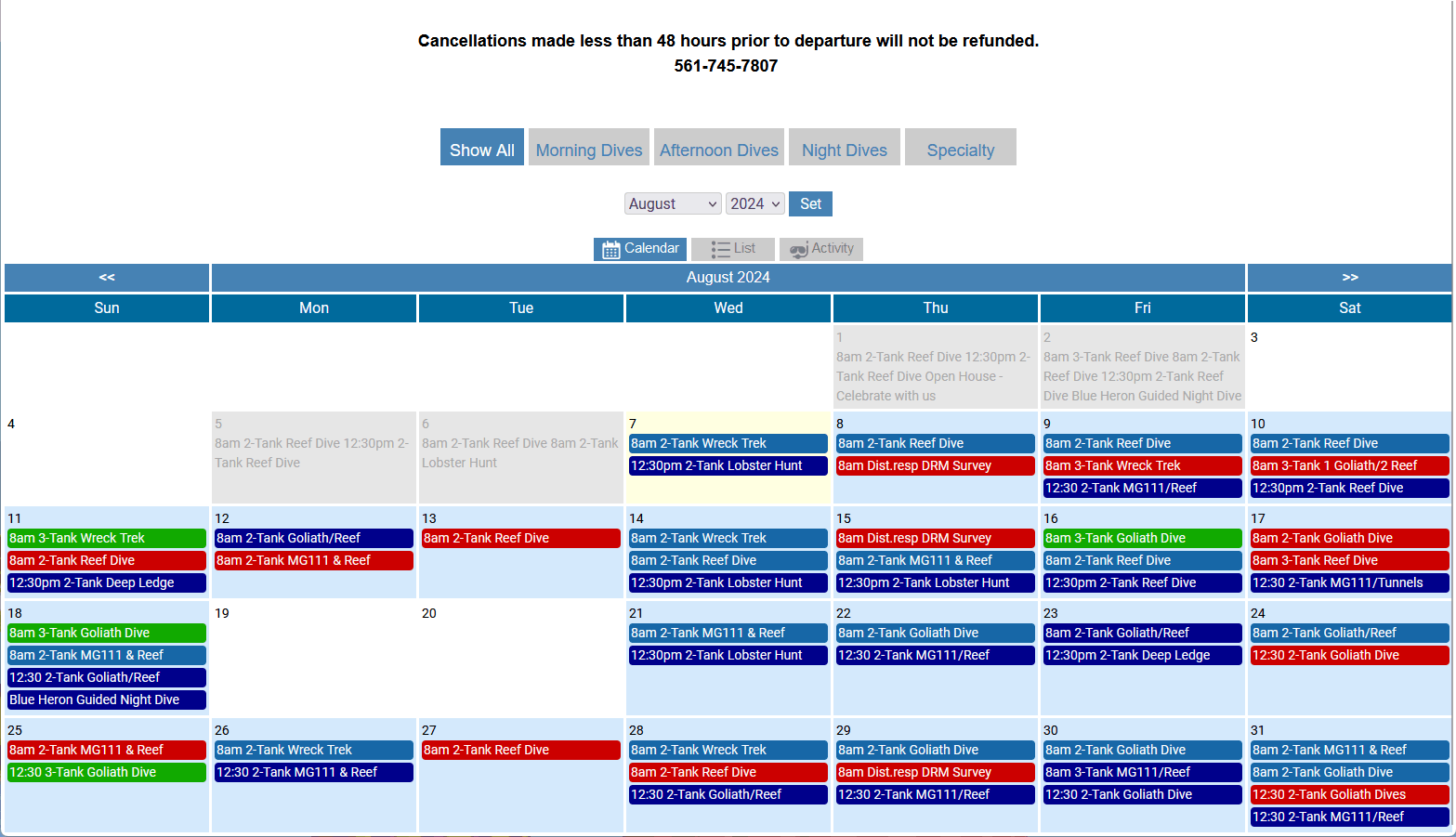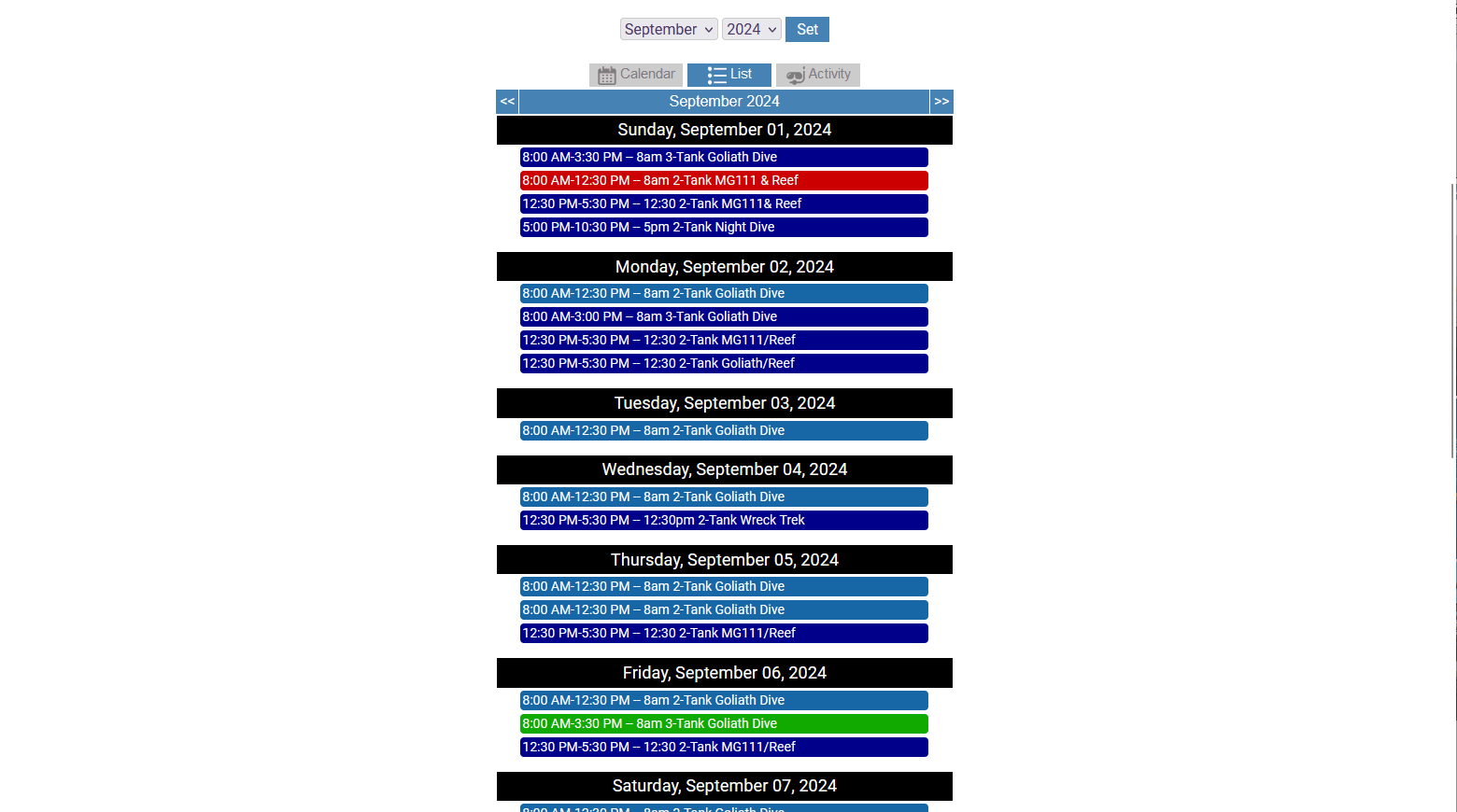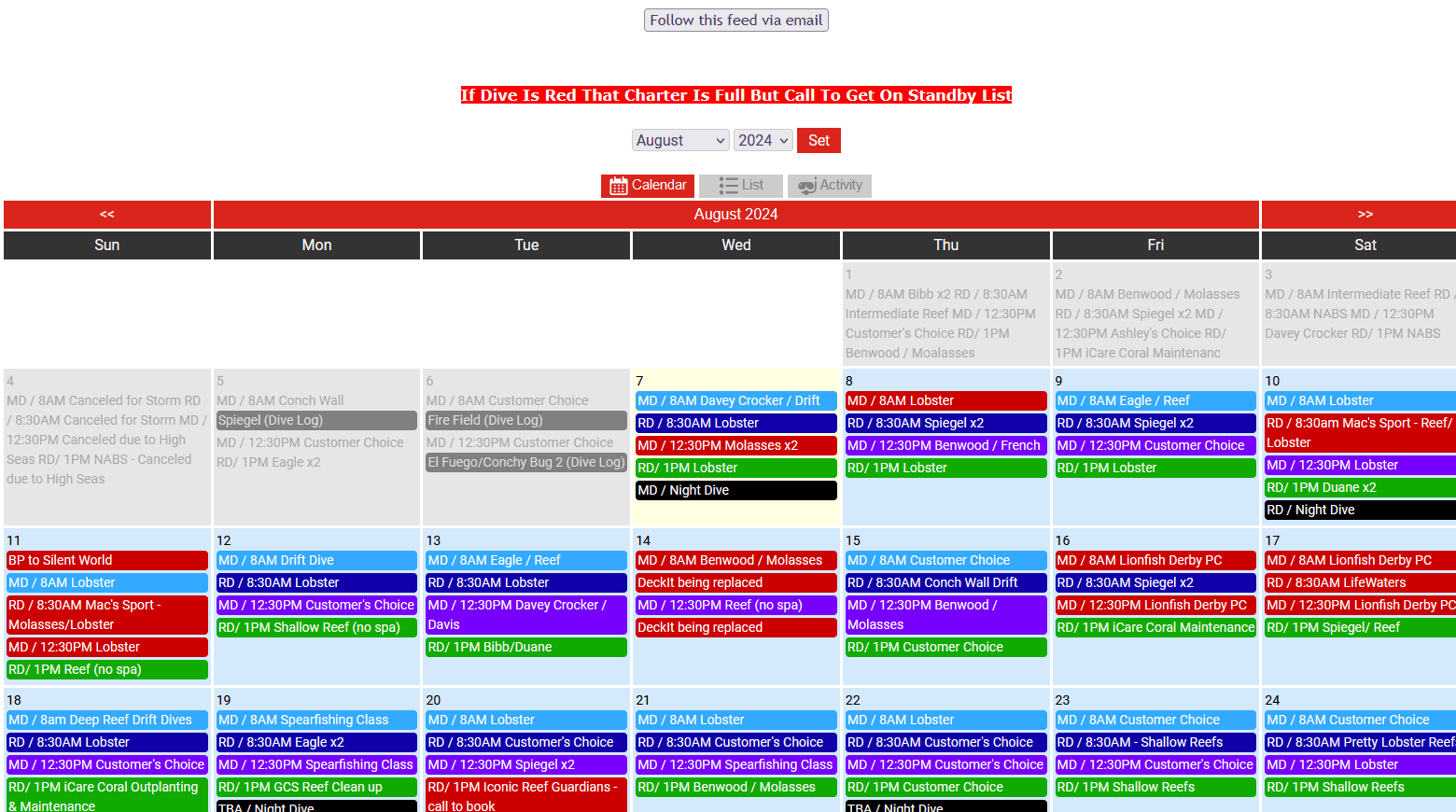 Schedule Dives, Charters, Snorkel Trips, Activities, Events, Trips, and Classes.