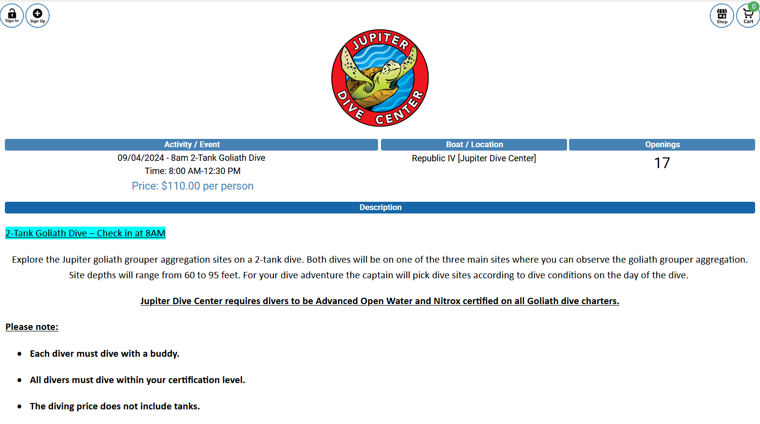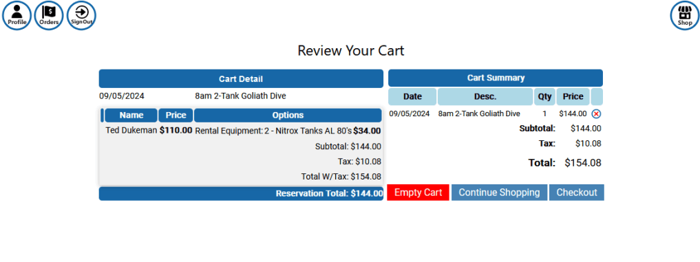 Dedicated Scuba Diving Reservation System, E-Waivers, Shopping Cart and Connected Point Of Sale