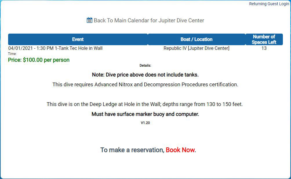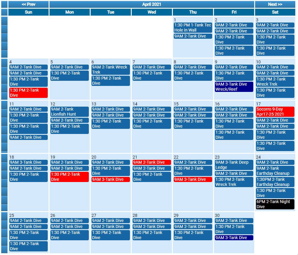 ENJOY real-time dive schedule updating. When an event is set, it is shown on your internal and external on-line calendar REAL TIME with the option to not display the event as well.